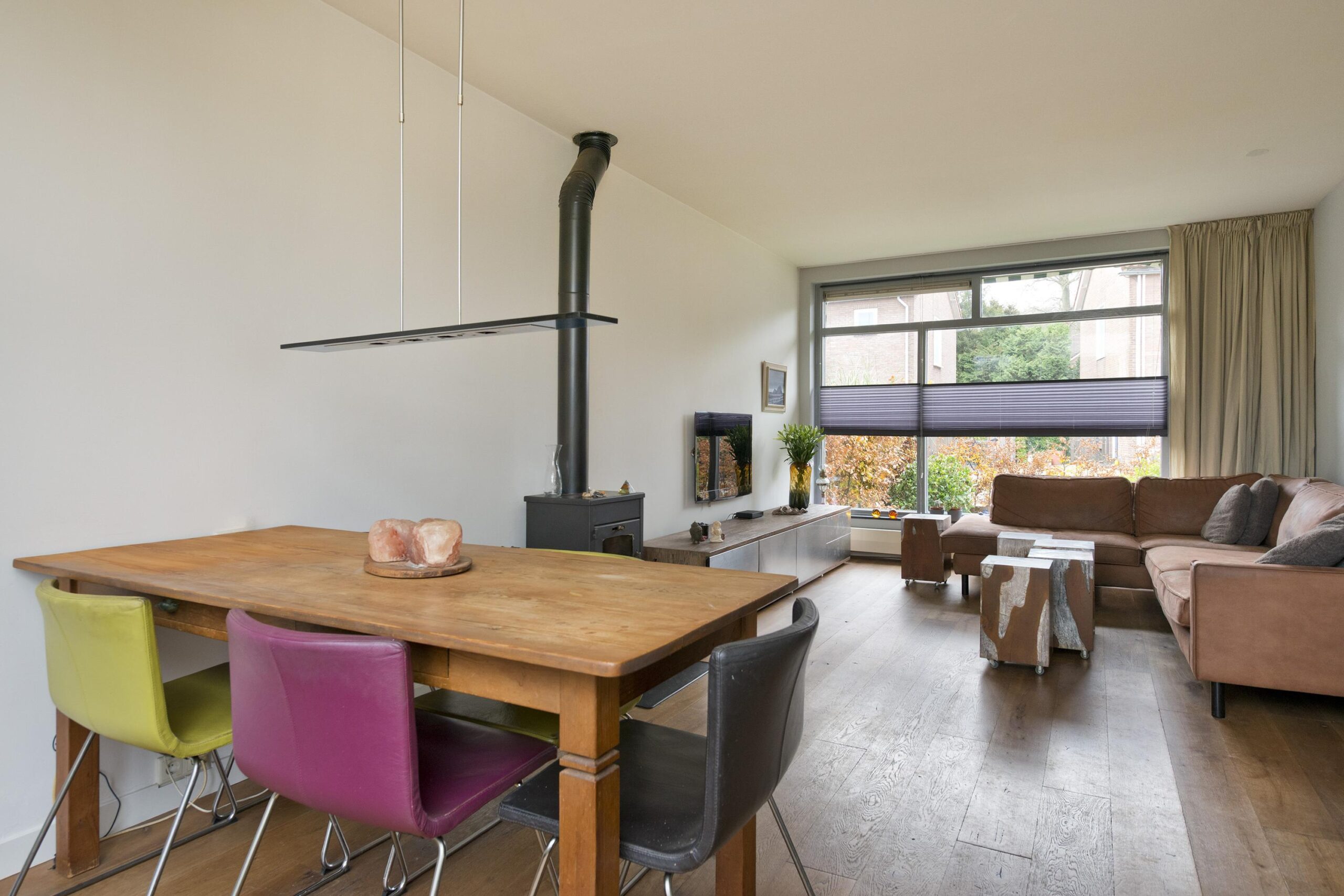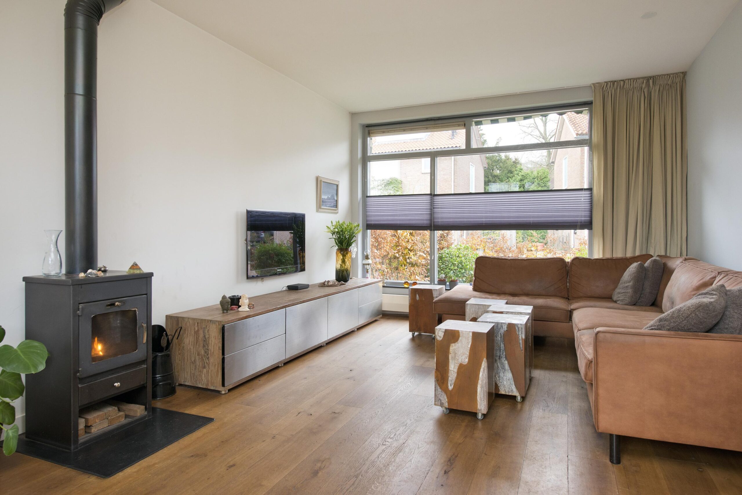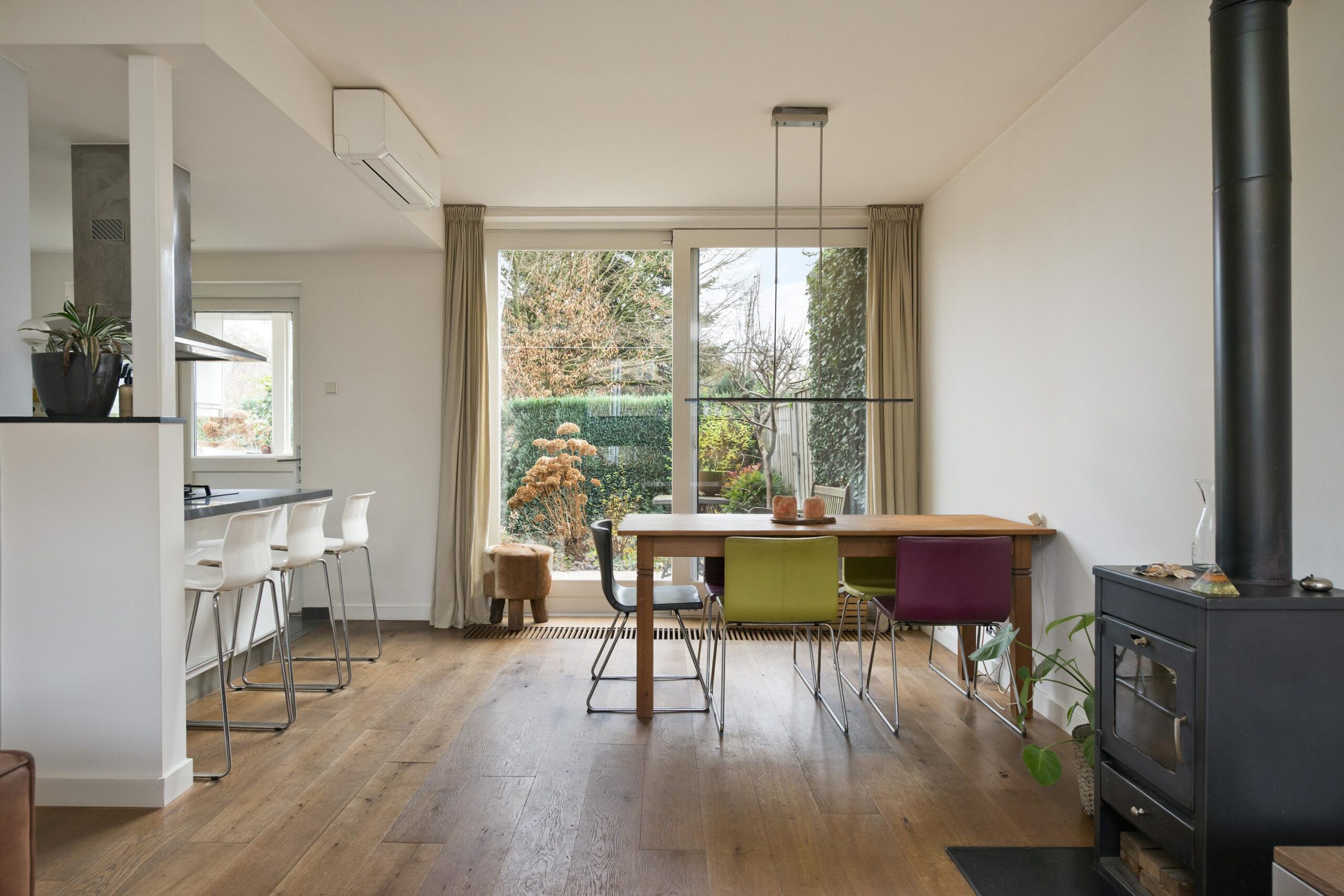 Begane grond: entree, toilet, provisiekelder, hobbykelder, lichte en nette woonkamer met sfeervolle houtkachel, en een open keuken die toegang biedt tot de zonnige, besloten tuin.