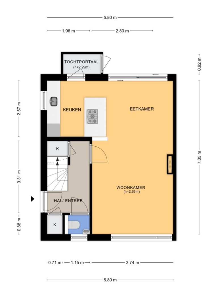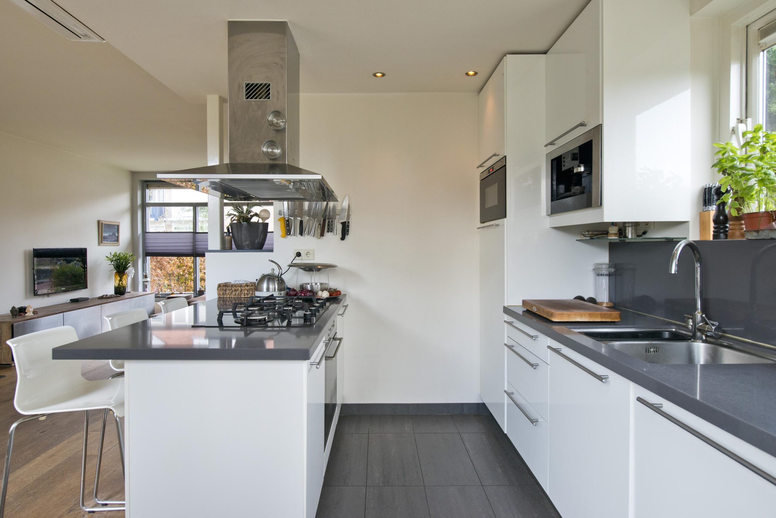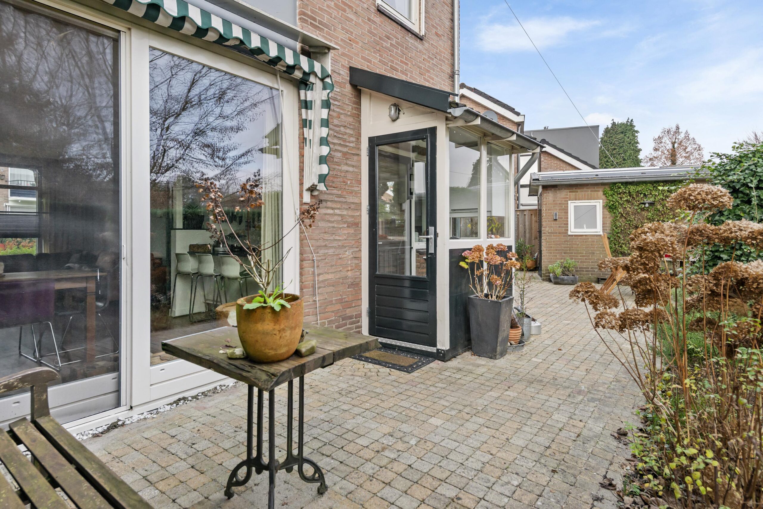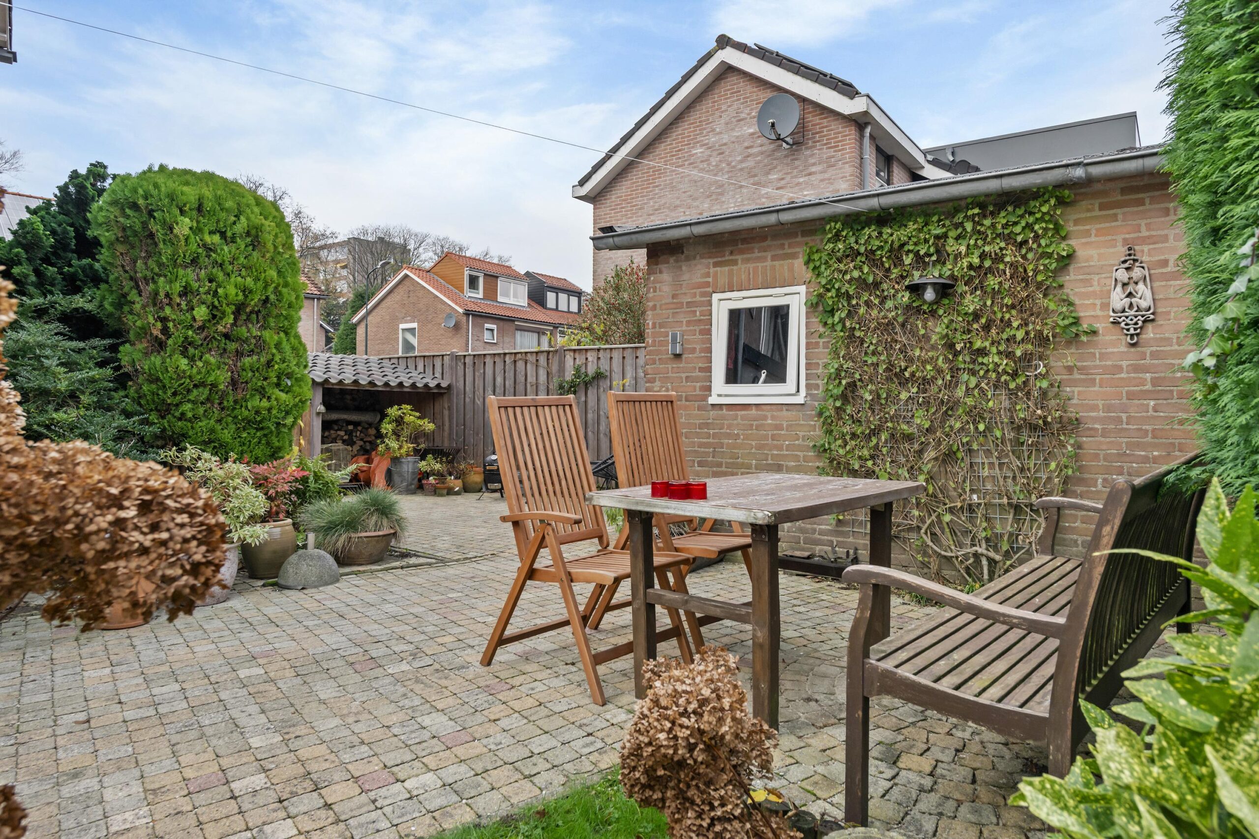 Begane grond: entree, toilet, provisiekelder, hobbykelder, lichte en nette woonkamer met sfeervolle houtkachel, en een open keuken die toegang biedt tot de zonnige, besloten tuin.