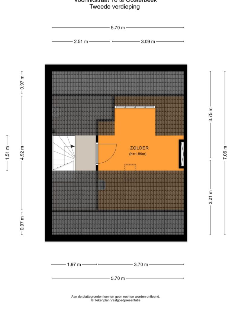 Zolderverdieping: ruime zolder met een 4e slaapkamer, voorzien van een dakkapel. Deze kamer heeft een hoogte van 1.85 meter, waardoor deze niet is meegerekend in het totale woonoppervlak, maar zeker een waardevolle extra ruimte biedt.