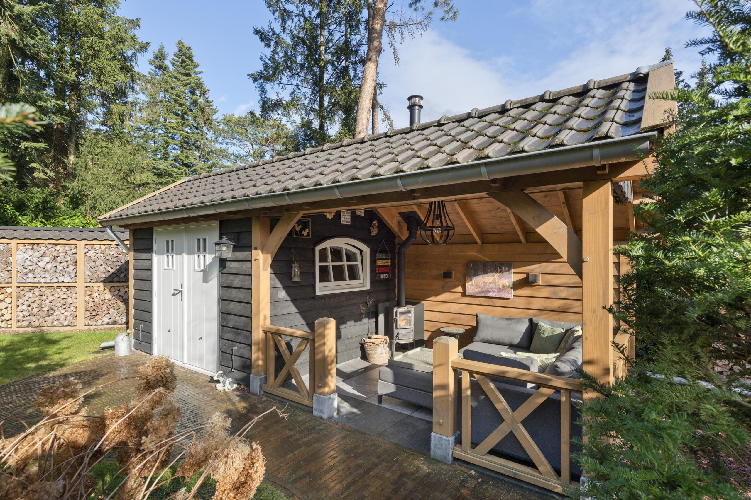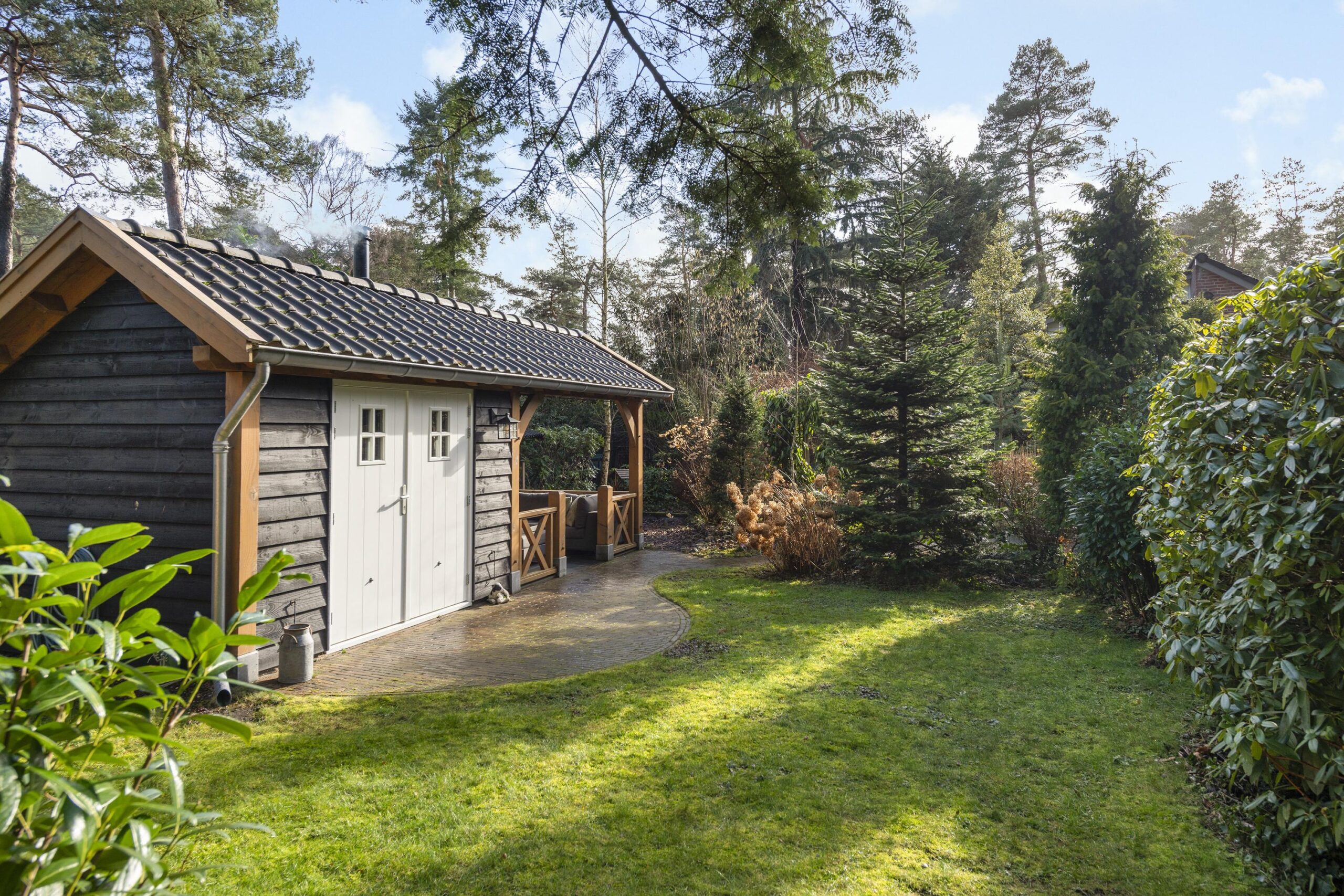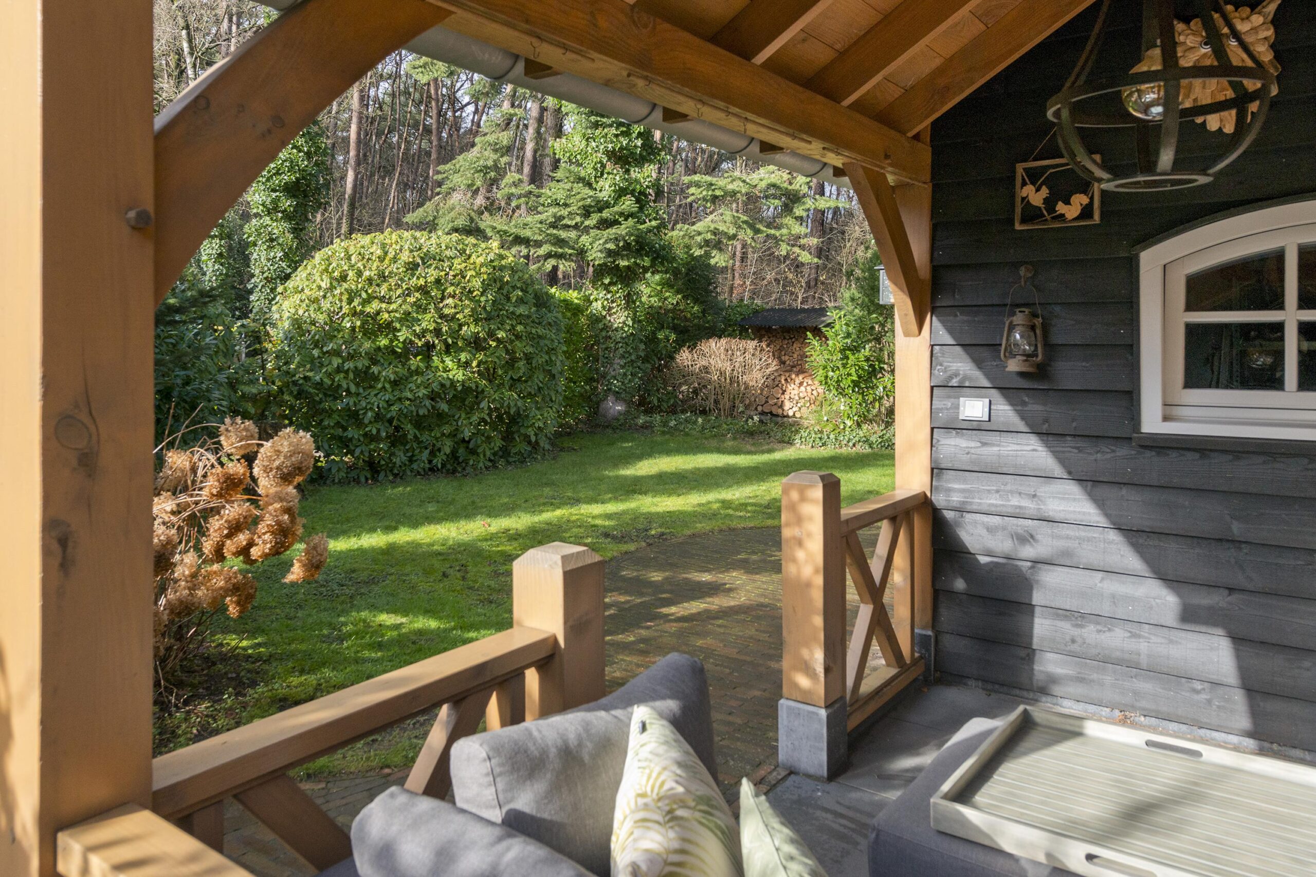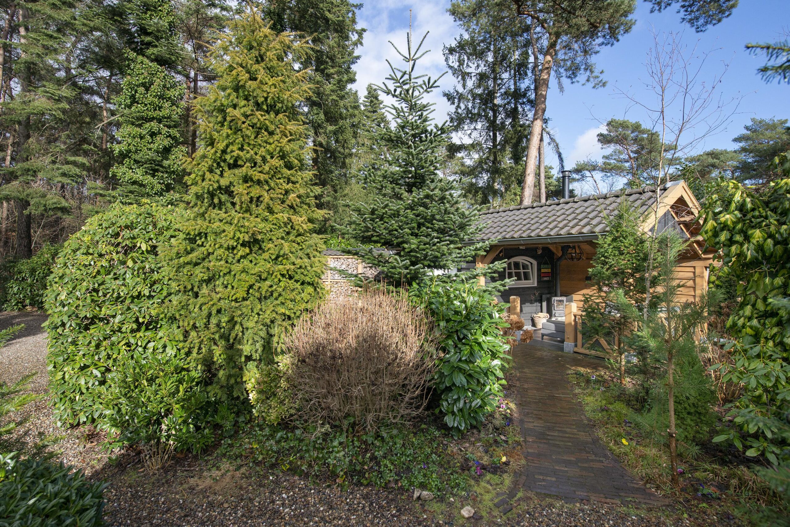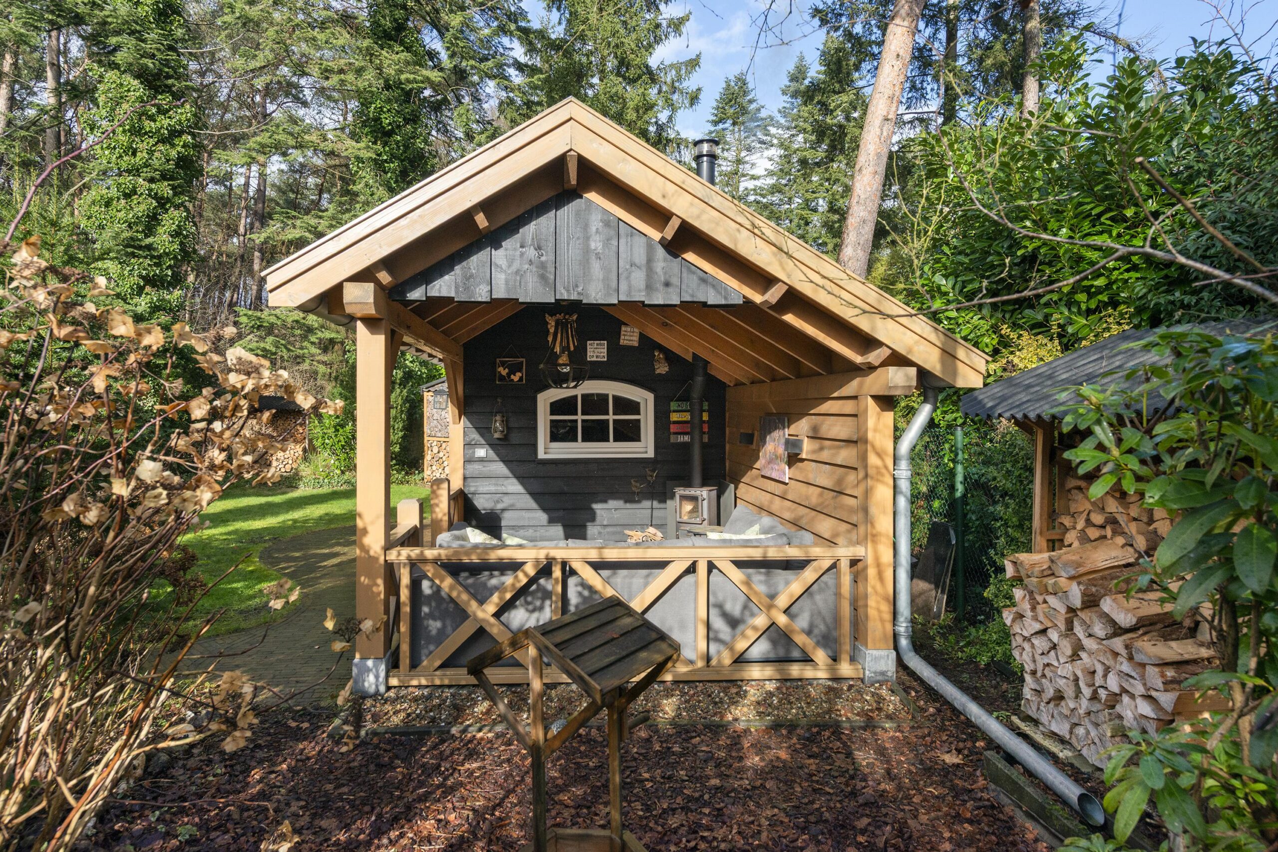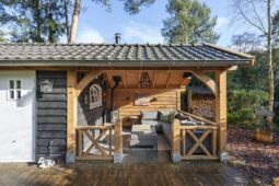 Buiten geniet u van een prachtige tuin rondom de woning, waar elk seizoen zijn charme heeft. In de tuin staat een houten tuinhuis met veranda, dé plek om lekker in de avond te genieten na een lange dag of op een zomerse dag heerlijk tot rust te komen. Vanuit de ruime tuin loop je direct een bospad op.