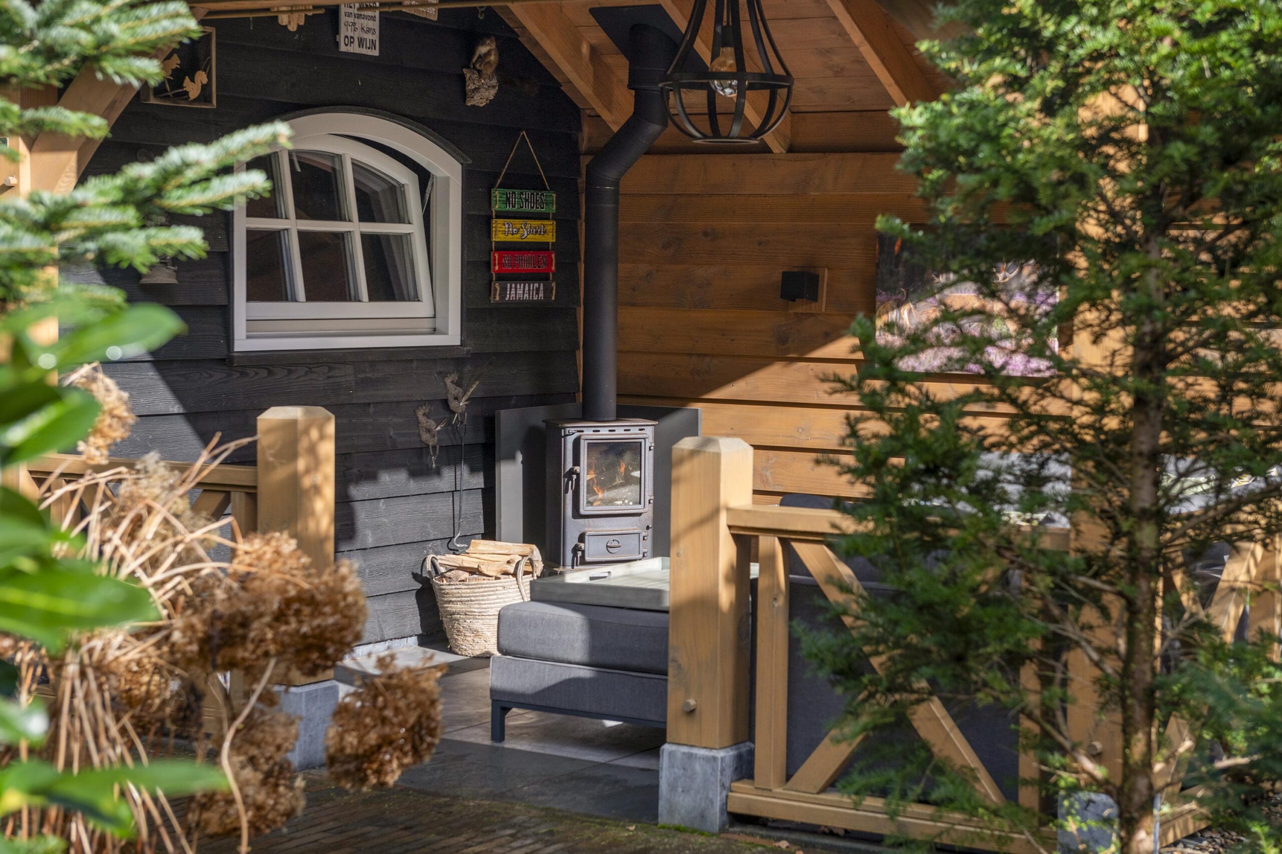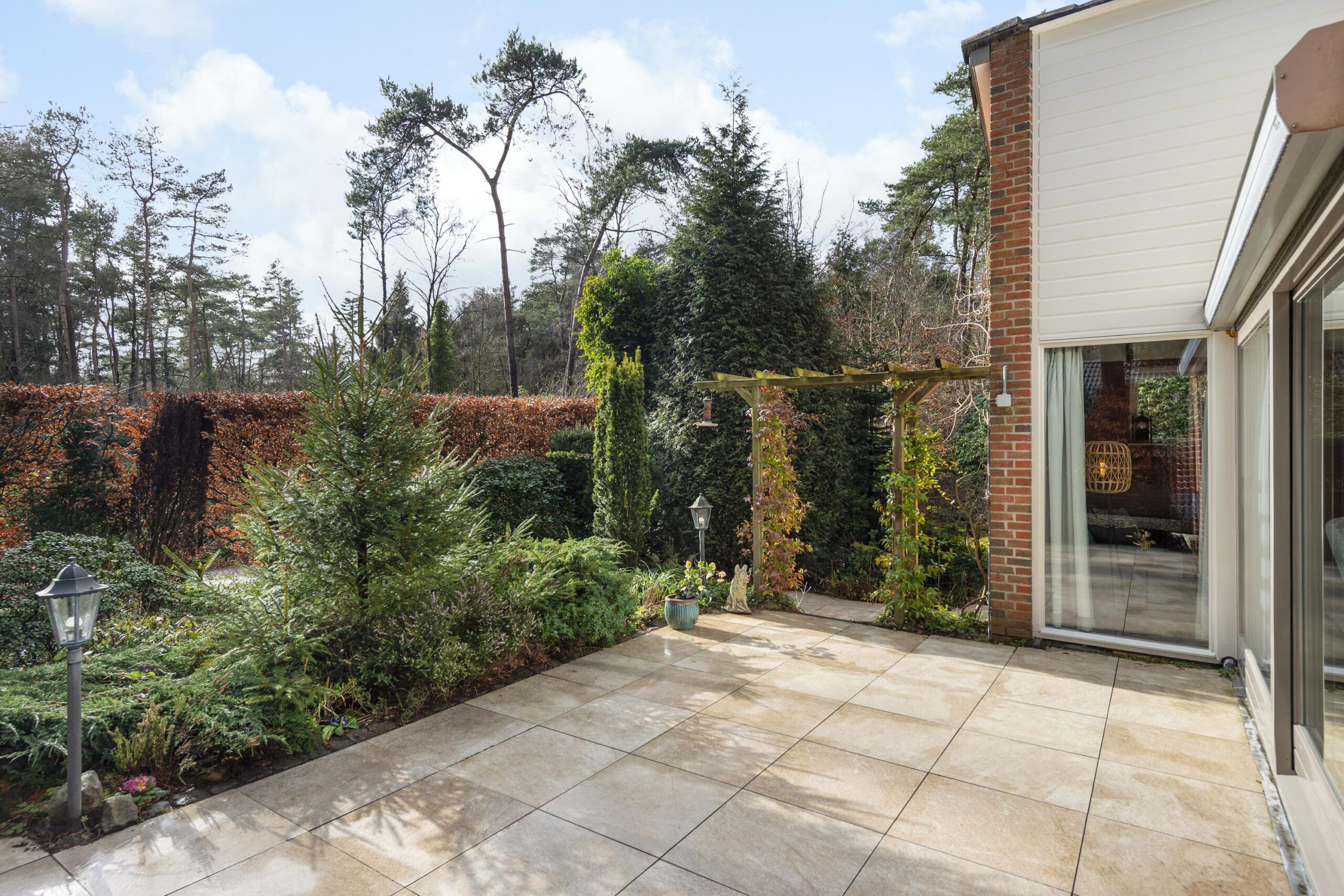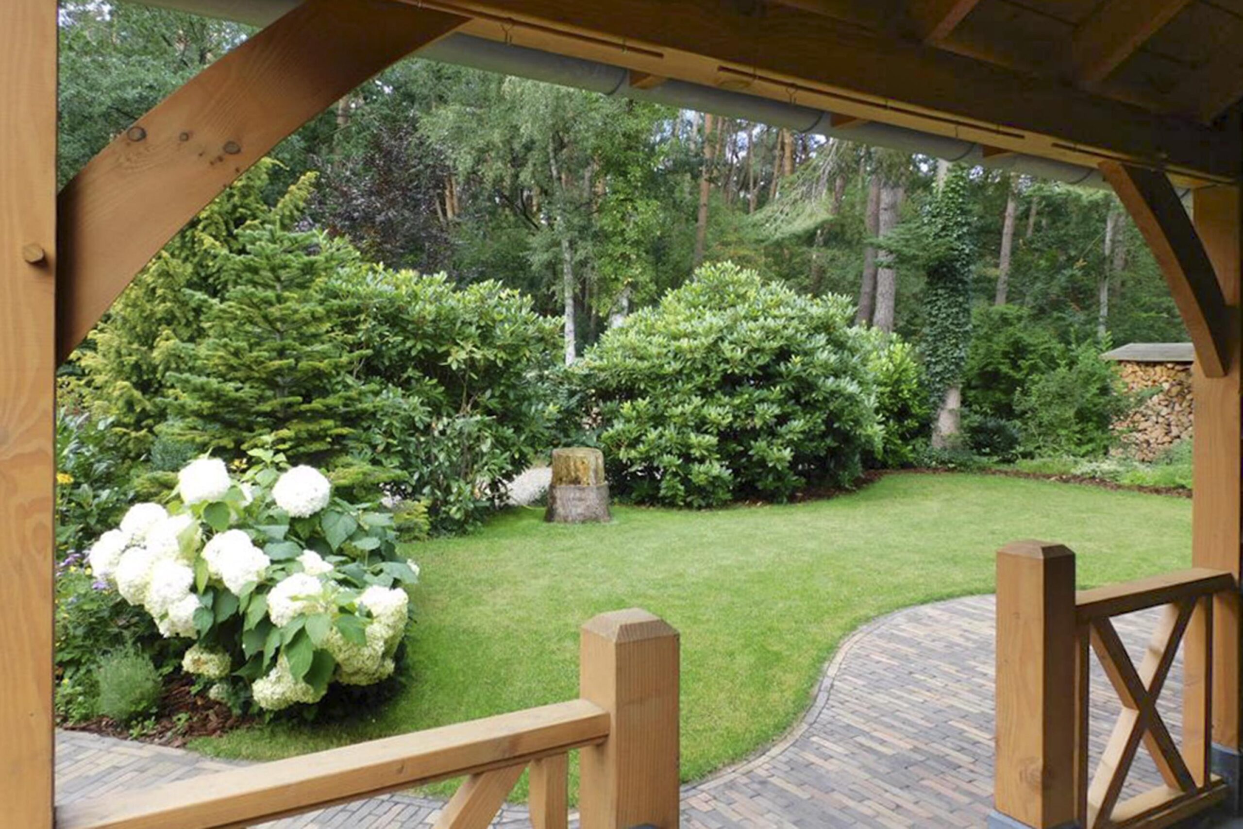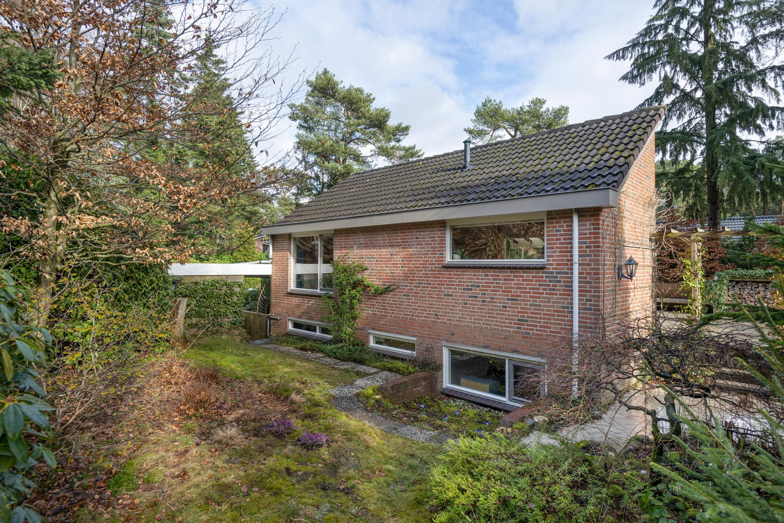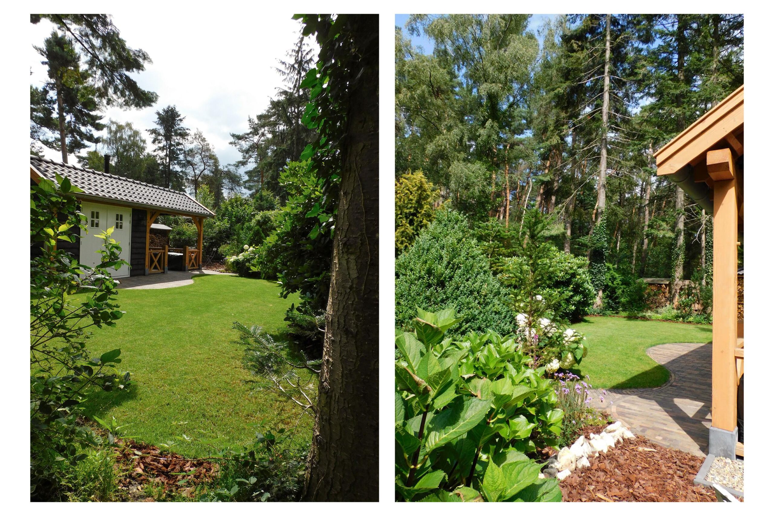 Buiten geniet u van een prachtige tuin rondom de woning, waar elk seizoen zijn charme heeft. In de tuin staat een houten tuinhuis met veranda, dé plek om lekker in de avond te genieten na een lange dag of op een zomerse dag heerlijk tot rust te komen. Vanuit de ruime tuin loop je direct een bospad op.
