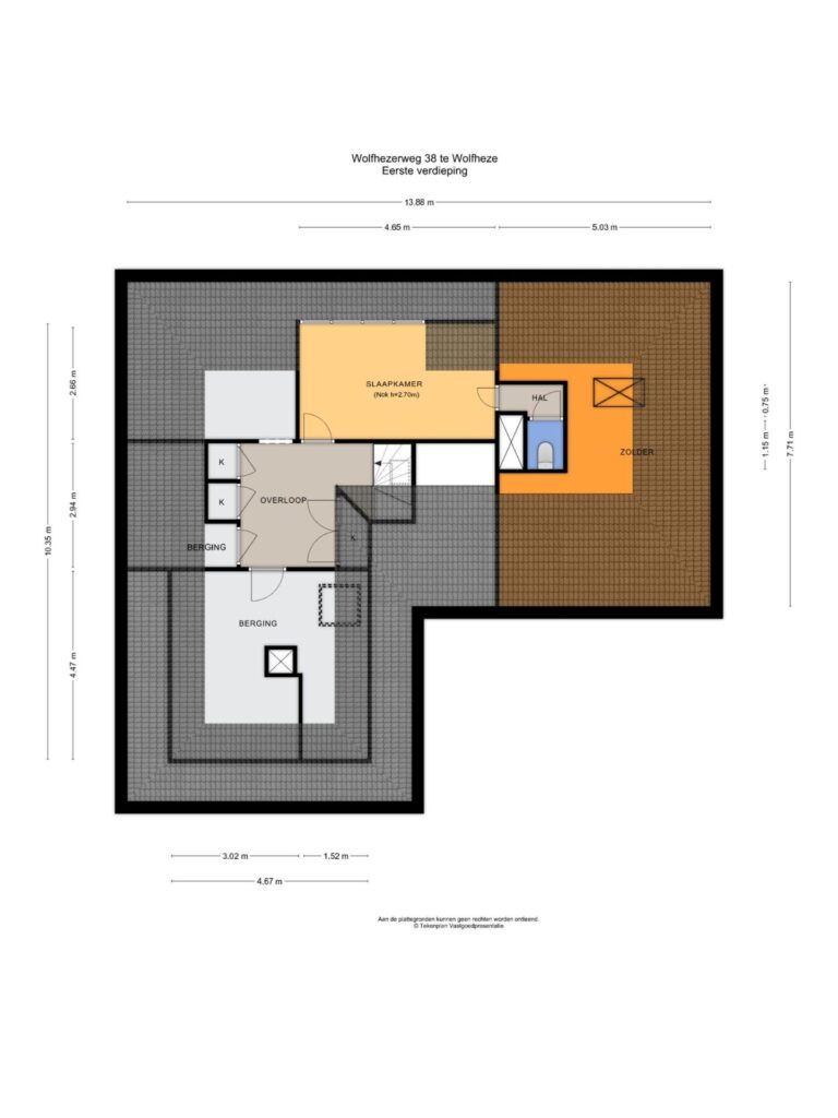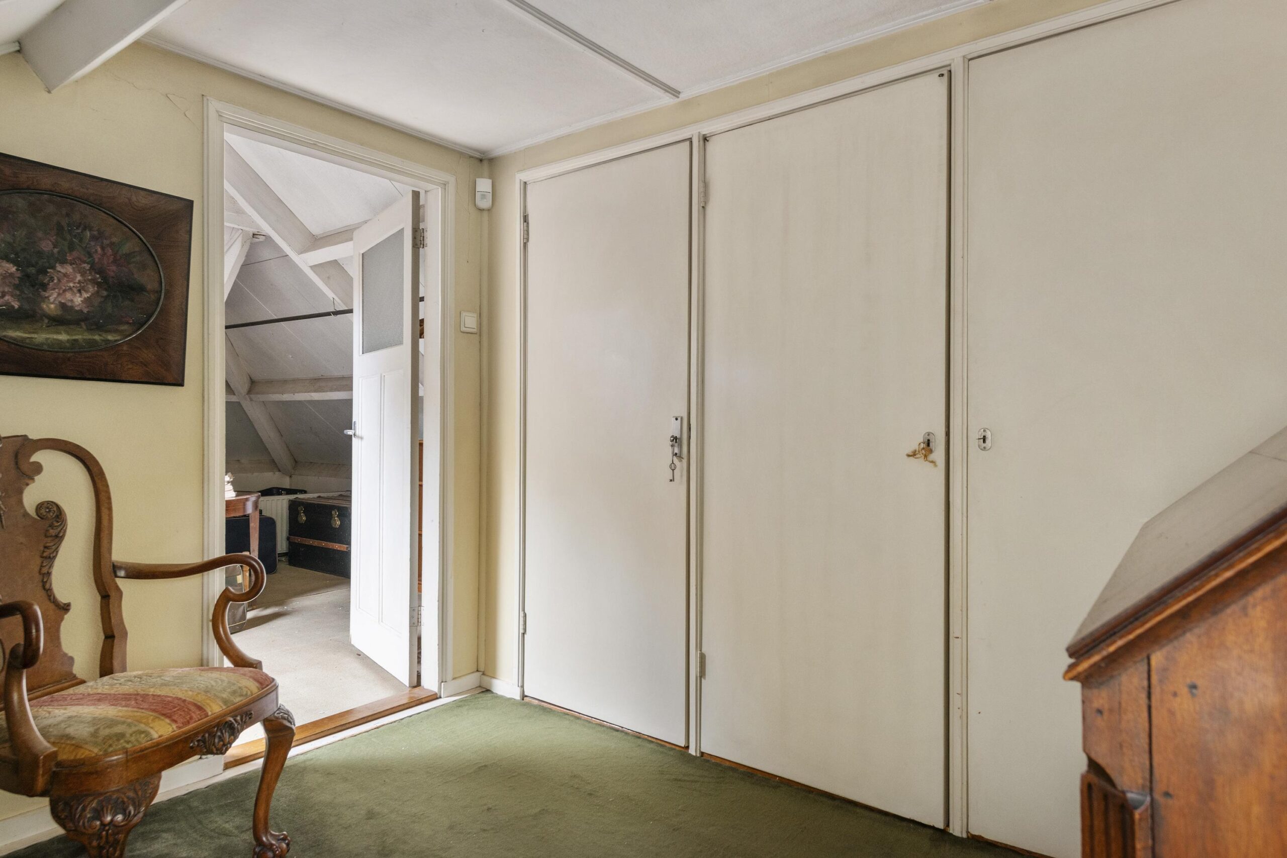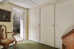 Eerste verdieping: overloop met grote vaste kastenwand, slaapkamer met halletje naar het toilet, en een ruime bergkamer met volop mogelijkheden om een extra (slaap)kamer te realiseren.
