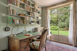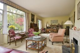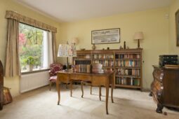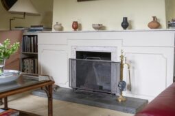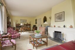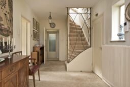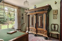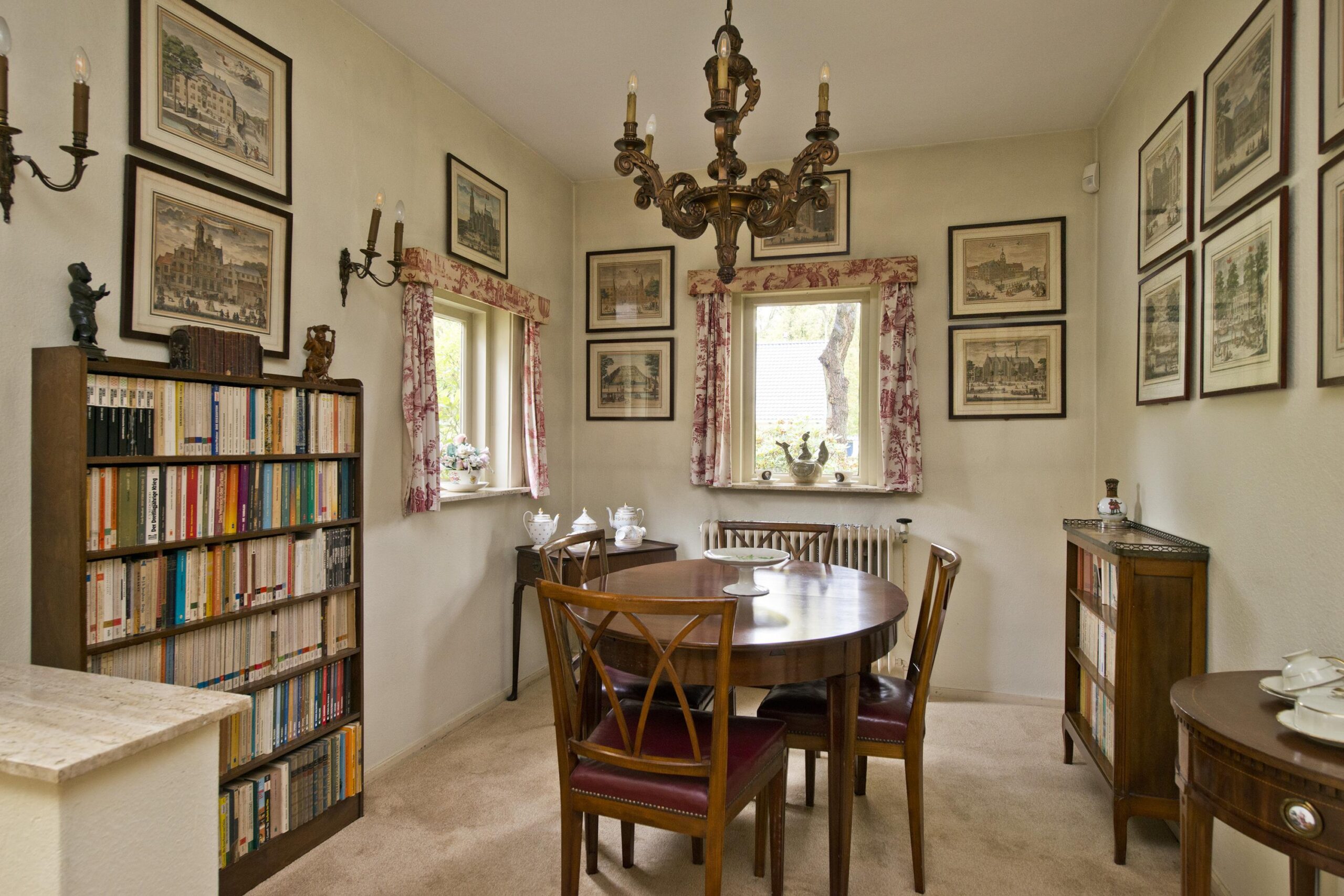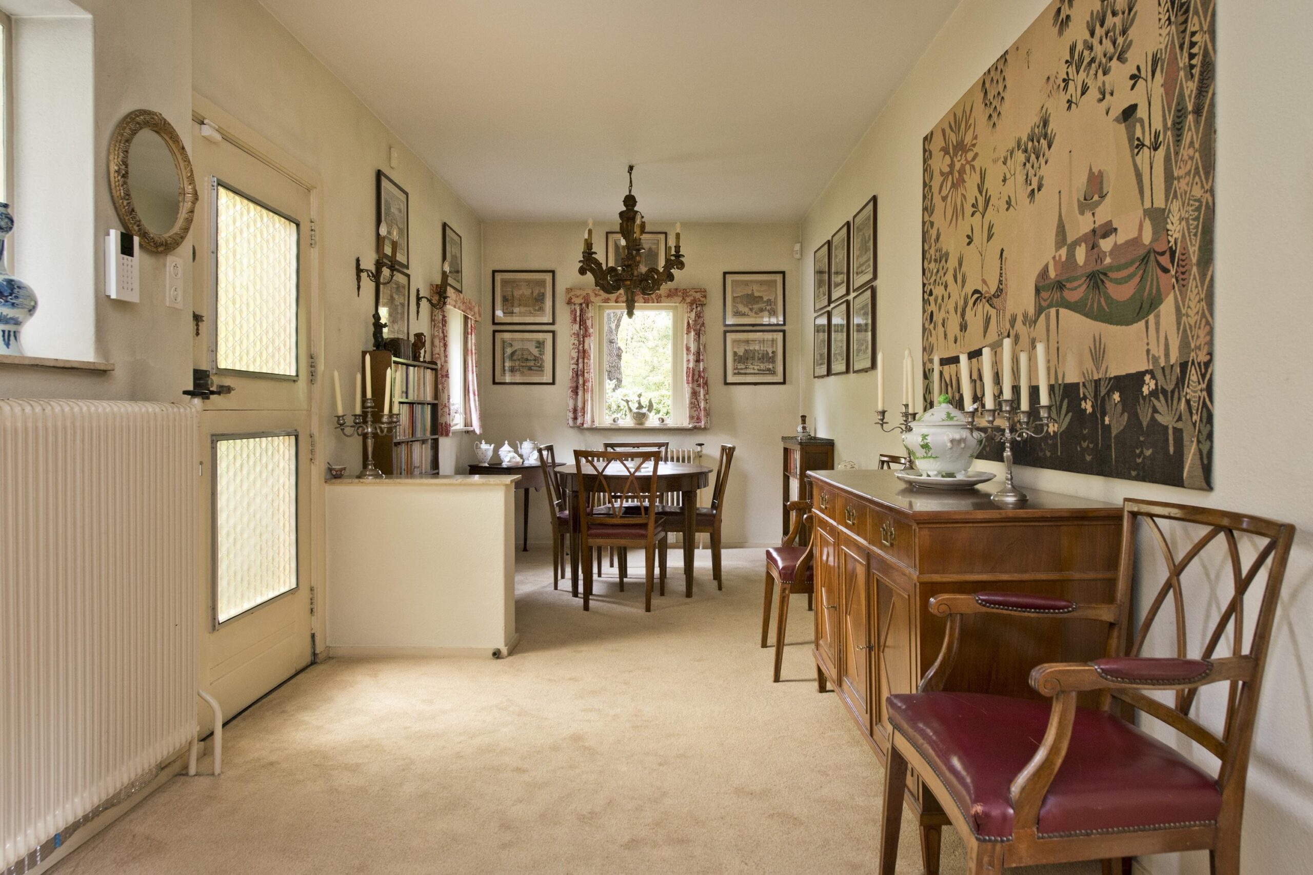 Begane grond: entree, multifunctionele ruime hal (thans in gebruik als eetkamer) met toegang tot de praktische provisiekelder. Lichte woonkamer met grote raampartijen, sfeervolle haard en openslaande deuren naar de tuin.